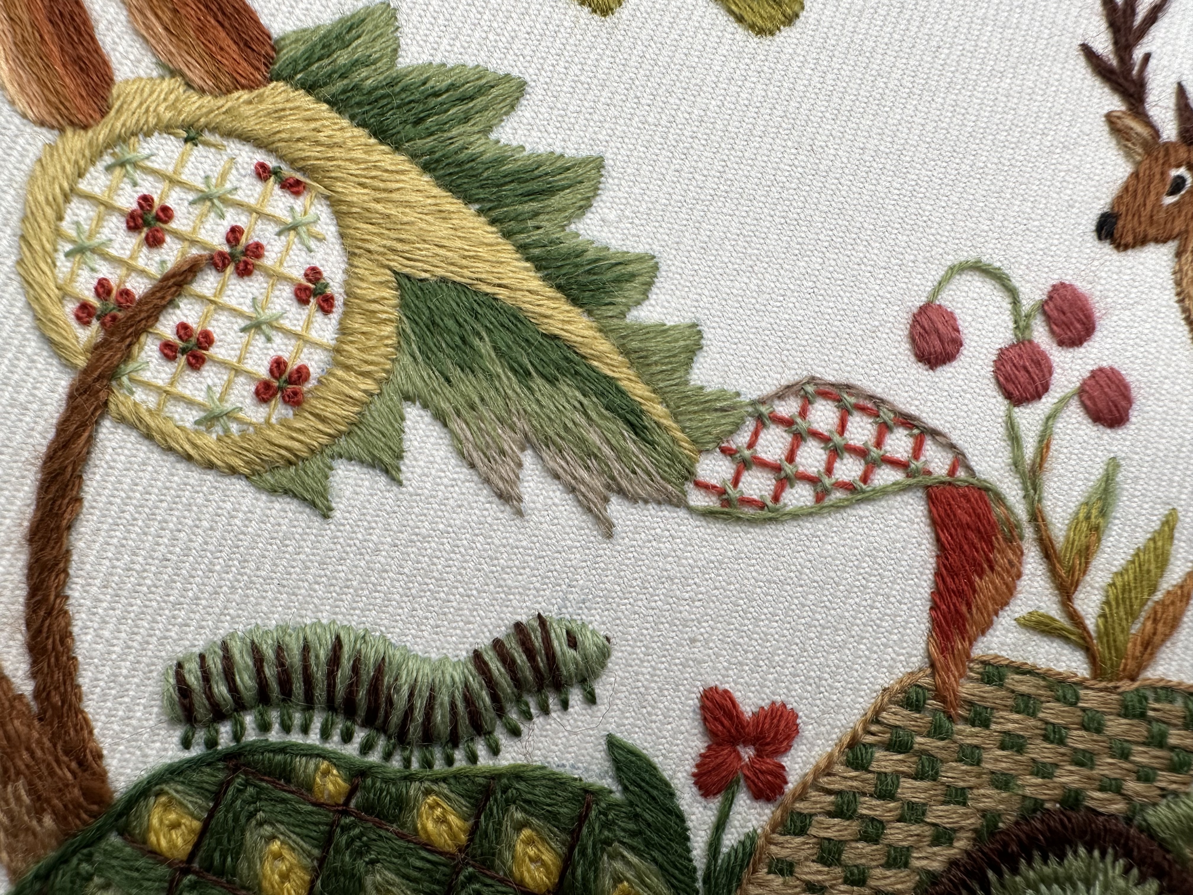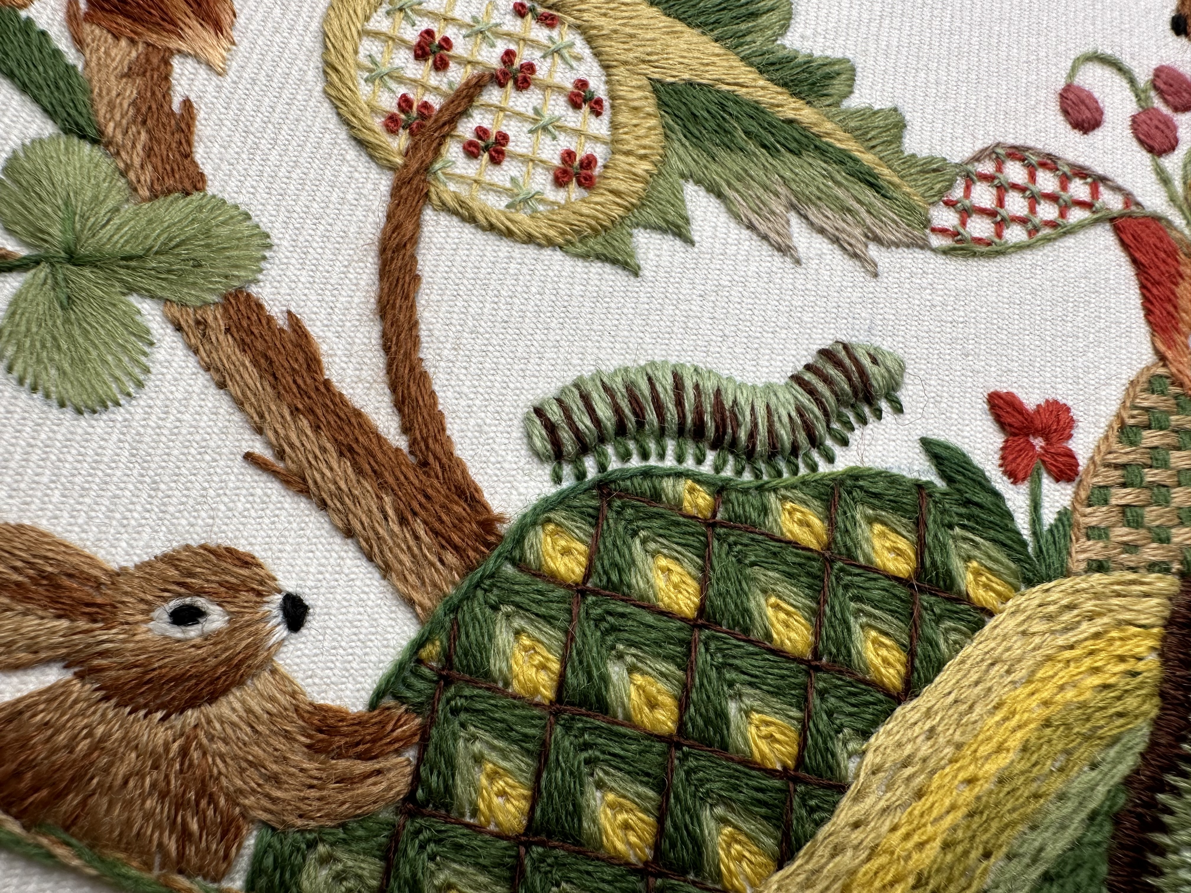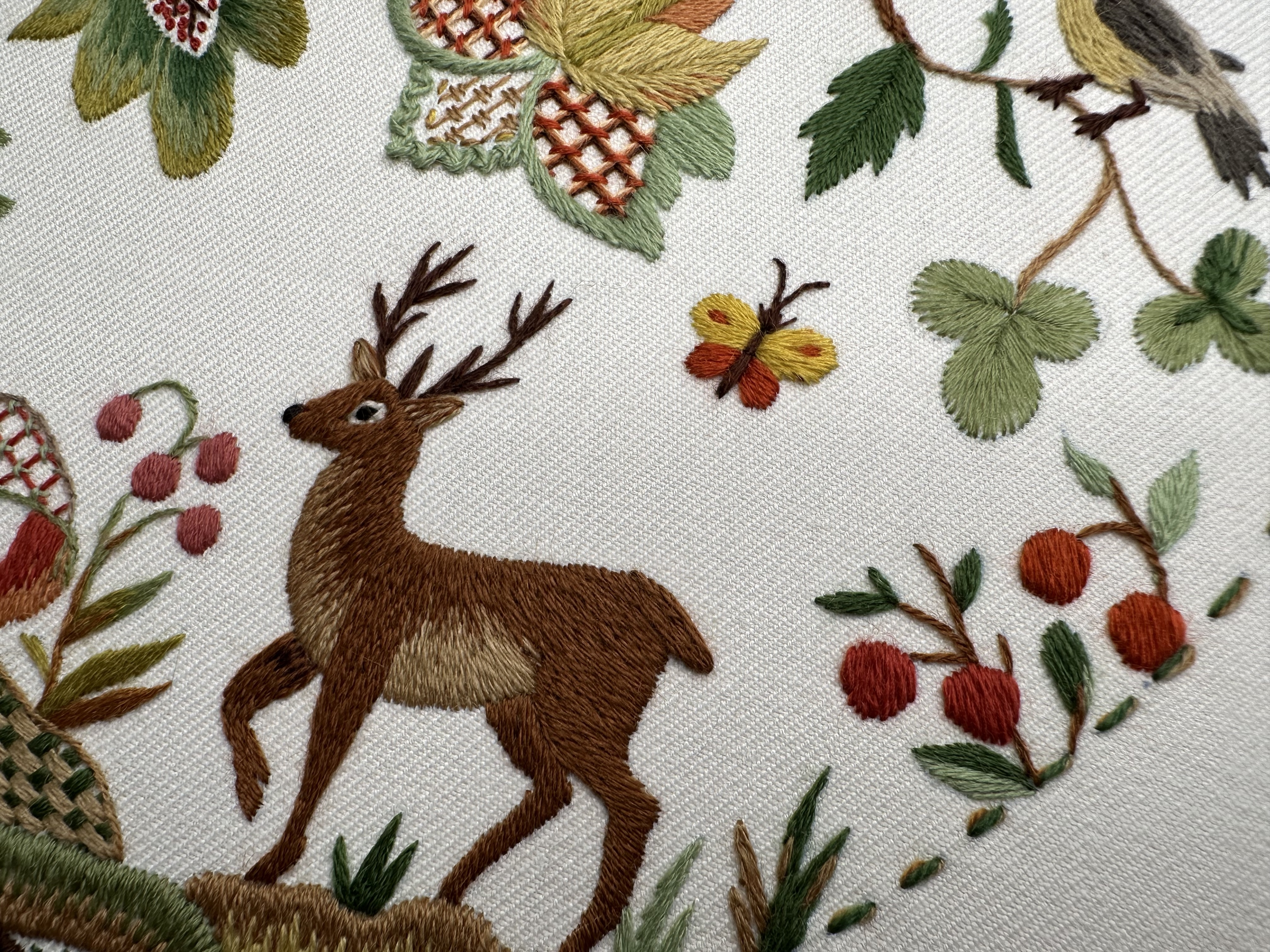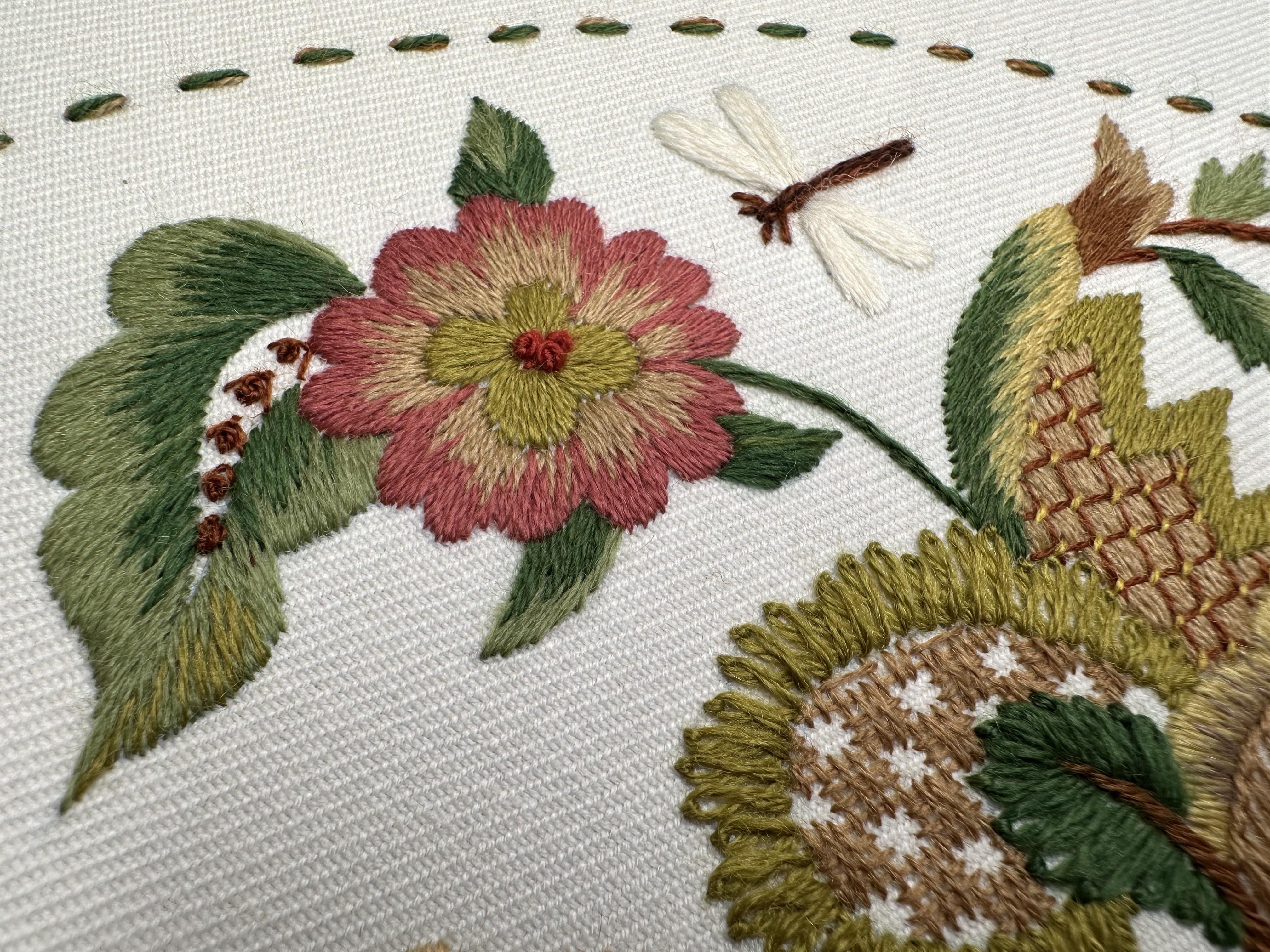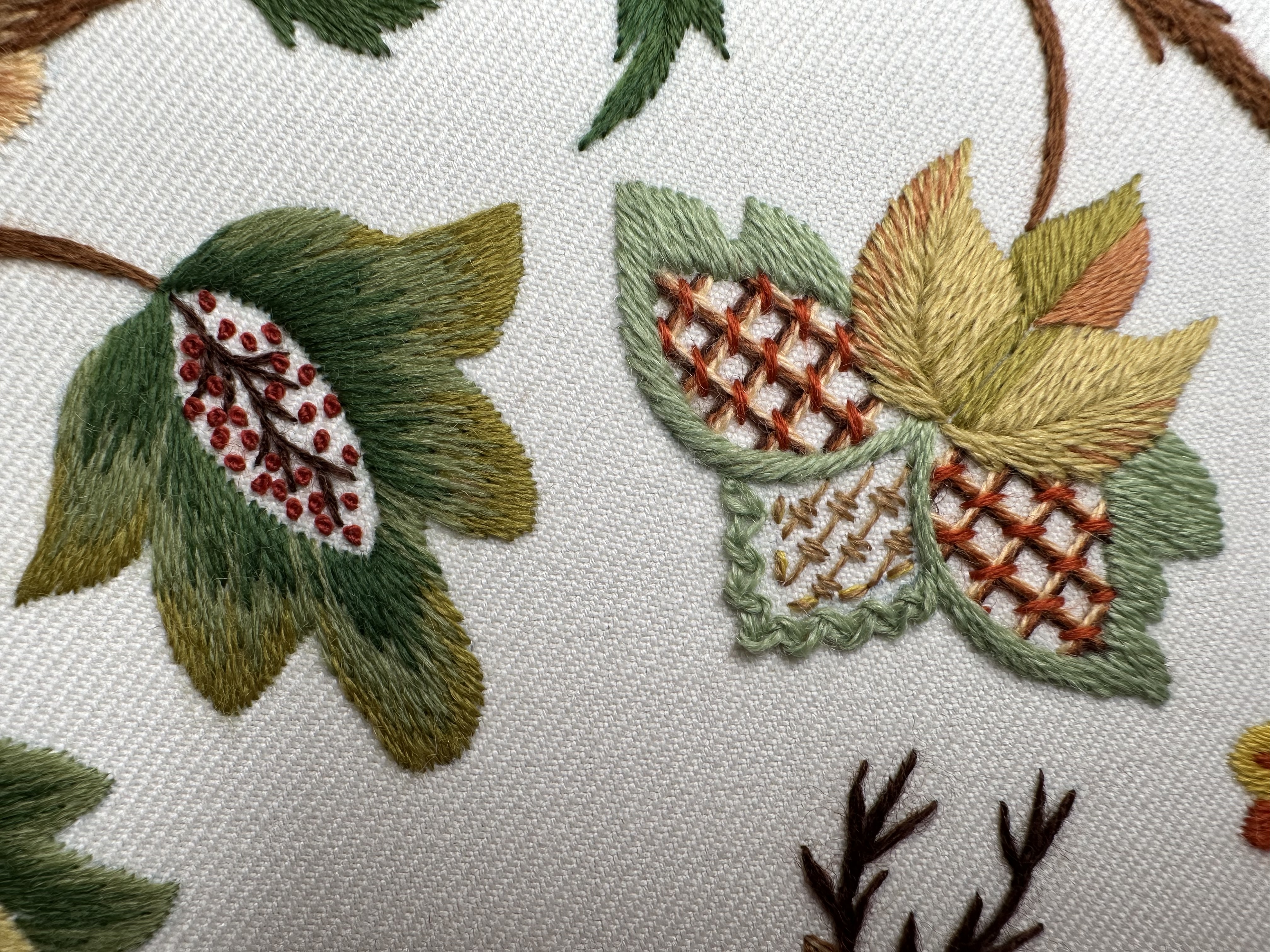 Со временем стиль якобинской вышивки обрастал новыми сюжетами, материалами и приемами, но истоки этой вышивки — классика райского сада в шерстяном исполнении остаётся в сердце.